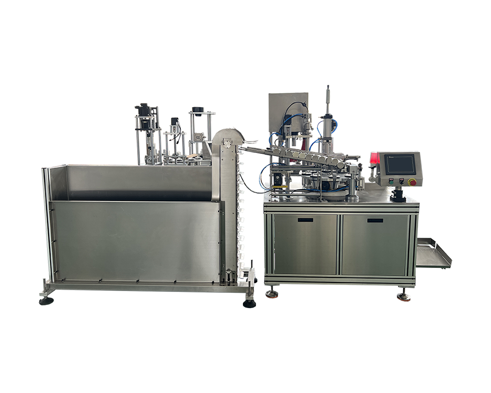 Automatic control, users only need to manually add bottles and bottom caps, the equipment automatically supplies bottles/automatically quantitatively fills, automatically covers/automatically presses caps/automatically unloads materials, greatly improving production efficiency.
